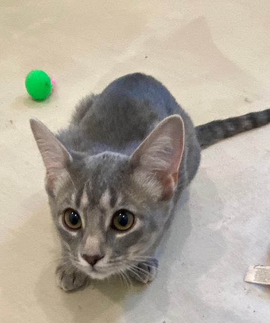 Celecia is a sweet but shy 6-month-old kitten (born 4/28/25) who loves to find cozy hiding spots. Initially reserved around new people, she warms up with a little patience and gentle encouragement. Born at the shelter to her mom, Mama Mia, she's one of five kittens, three of whom have already found loving homes. Celecia gets along wonderfully with other cats, and enjoys a close bond with her mom. While she hasn't been introduced to dogs yet, her young age suggests she'd adapt well. With her gentle charm, Celecia would thrive in a calm, loving, home. Would you open your heart to this sweet, shy kitten?