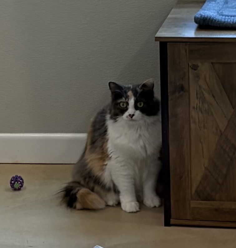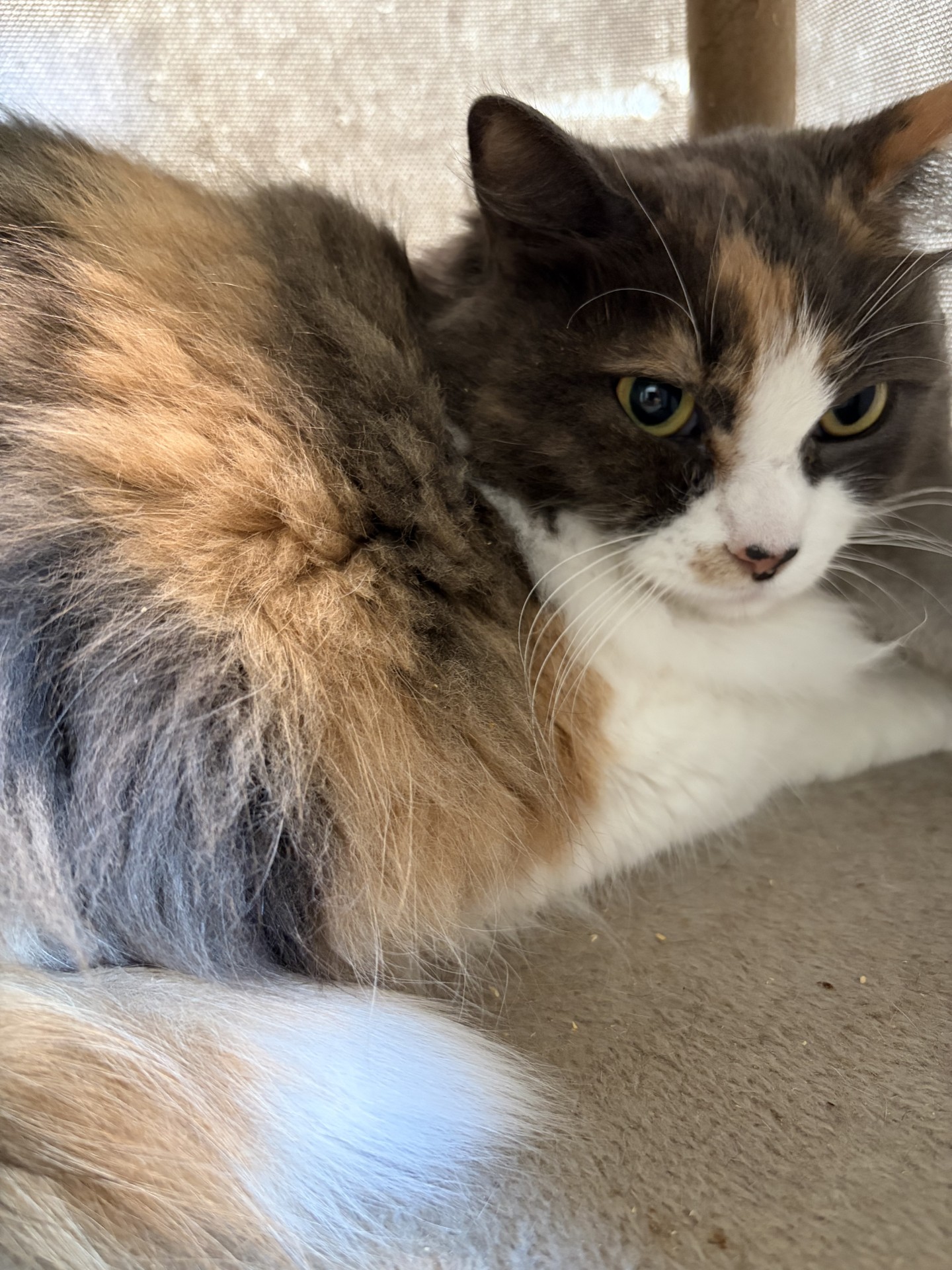 Lilly is a sweet, gentle soul who is still healing from the loss of her previous owner. At 5 years young (born on March 20,2021), this gorgeous girl weighs around 12 pounds and has the softest personality once she feels safe. She started out very shy, but she's slowly coming out of her shell and showing just how affectionate and loving she can be. Give her a little time and patience, and she'll happily curl up in your lap or follow you around for pets and snuggles. Lilly does great with other cats and would love a home where she can continue to feel secure. We're not sure how she'd do with dogs or children since she hasn't been around them, so a cat-only or calm adult home would be ideal. If you're looking for a quiet, sweet companion who will blossom with love and time, Lilly might be the perfect girl for you!